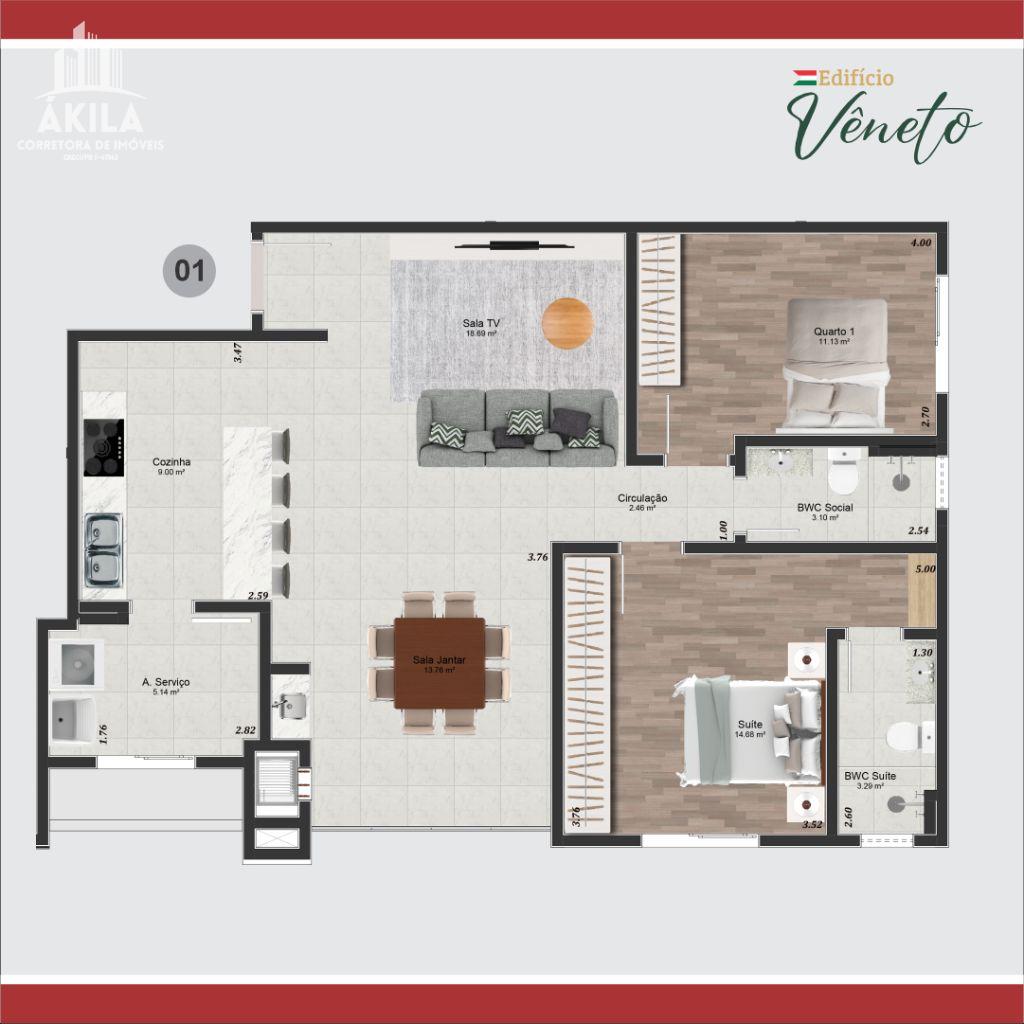 Um lugar aconchegante, com localização privilegiada, área gourmet integrada e planta com excelente disposição. Um design inovador, esse edifício oferece unidades espaçosas, apartamentos com 1 suite + 1 dormitório.